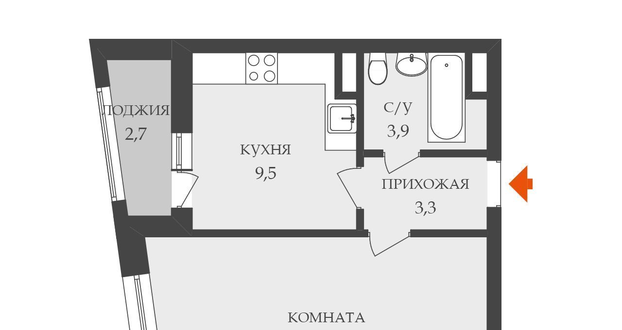 Отличная просторная однокомнатная квартира в аренду.