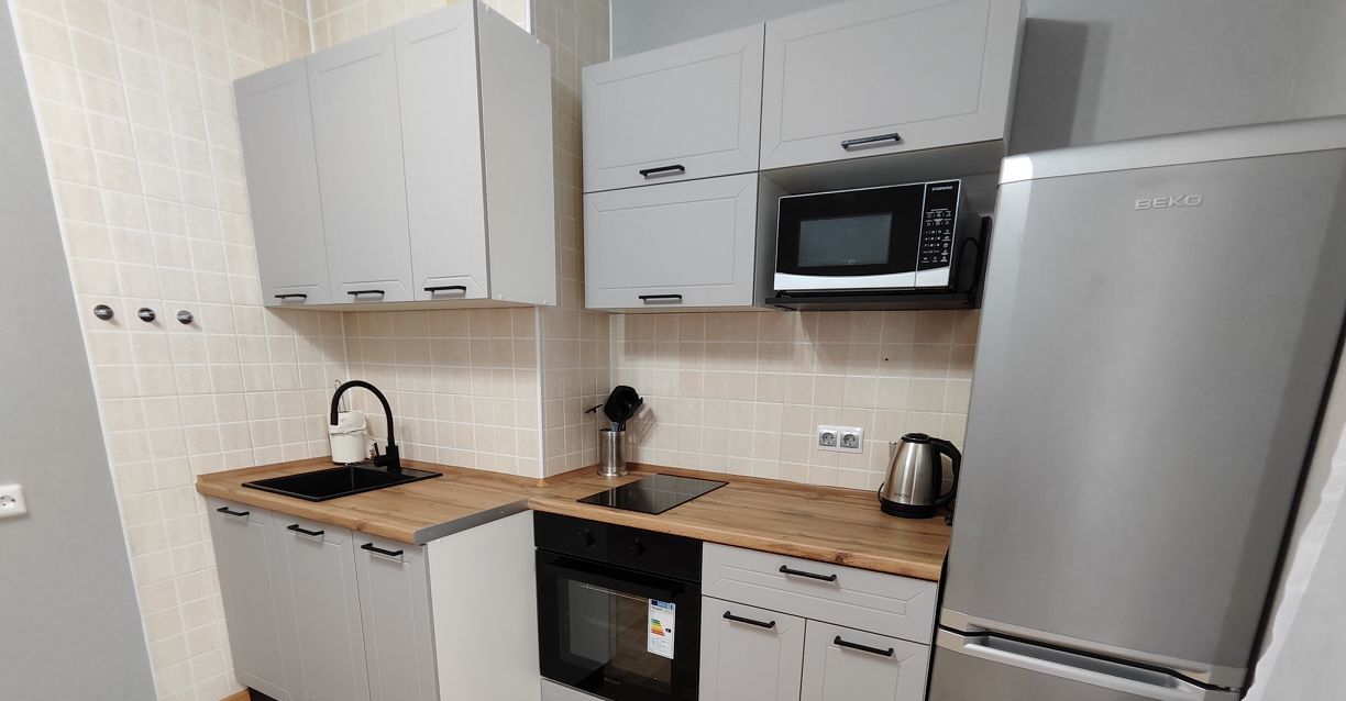 • Кухонный гарнитур со встроенной техникой (холодильник, плита, СВЧ)