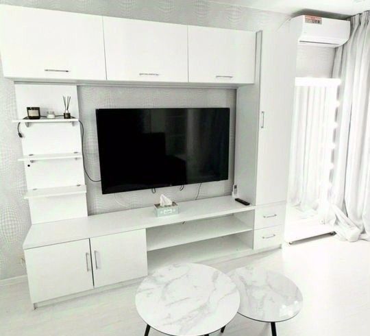 В квартире сделан современный евроремонт. Она полностью меблирована и оснащена всей необходимой техникой: кондиционер, холодильник, посудомоечная и стиральная машины, телевизор. Просторная планировка и стильный интерьер создают атмосферу комфорта и уюта. Совмещённый санузел выполнен в современном стиле.