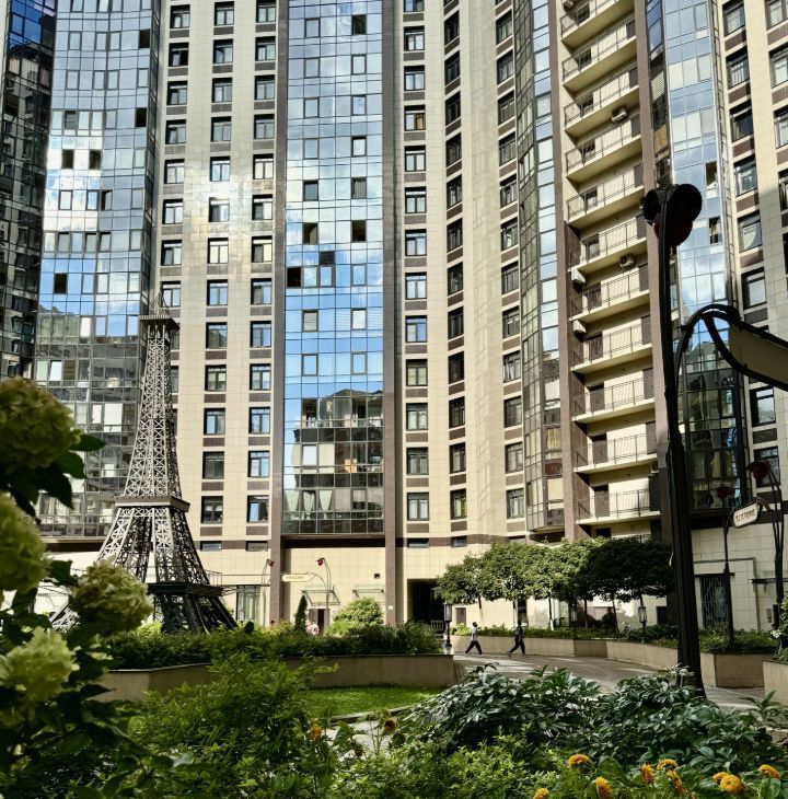 Достопримечательность - благоустроенный зеленый двор. В центральной части двора установлена миниатюра Эйфелевой башни, рядом копия купола Лувра, ландшафтный дизайн украшают перголы.
