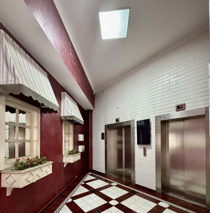 Кухня 11 м2, комната 14,2 м2, просторный санузел 4,5 м2, прихожая 3,6 м2, отдельная гардеробная 1,8 м2, лоджия (холодное остекление) 4,6 м2.