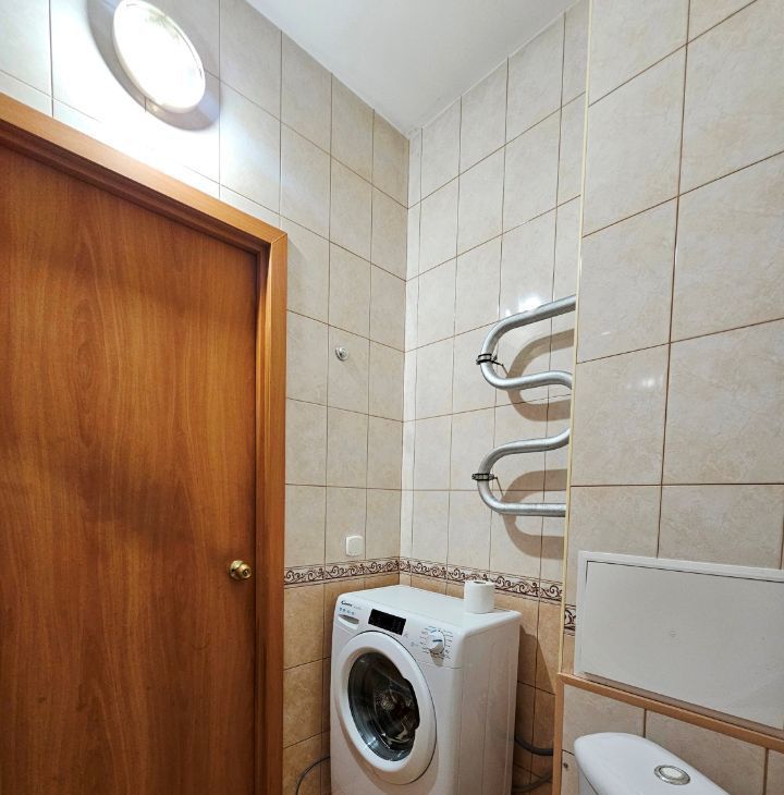 Санузел совмещенный, в кафеле. Стиральная машина.