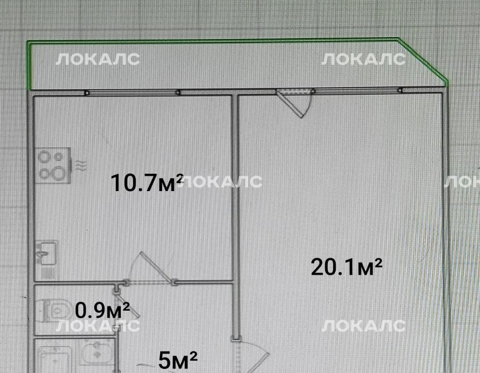 Комната 20.1м², квадратная кухня 10.7м², прихожая 5м². Шикарный балкон длиной 6.6м. В общем коридоре (закрытом от посторонних) оборудована большая кладовка для хранения вещей, колёс, велосипеда.