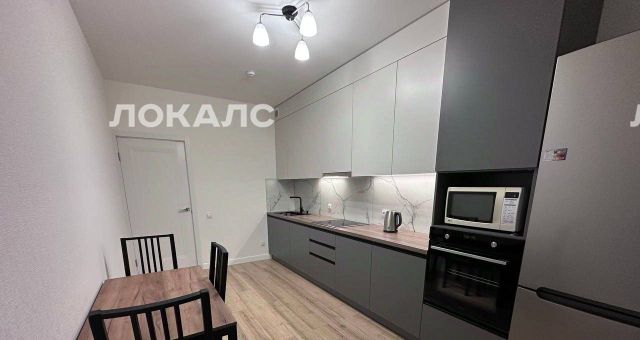 Кухня: функциональная кухонная мебель, вся необходимая встроенная и отдельно стоящая техника (холодильник, варочная панель, духовка, вытяжка, микроволновка).
