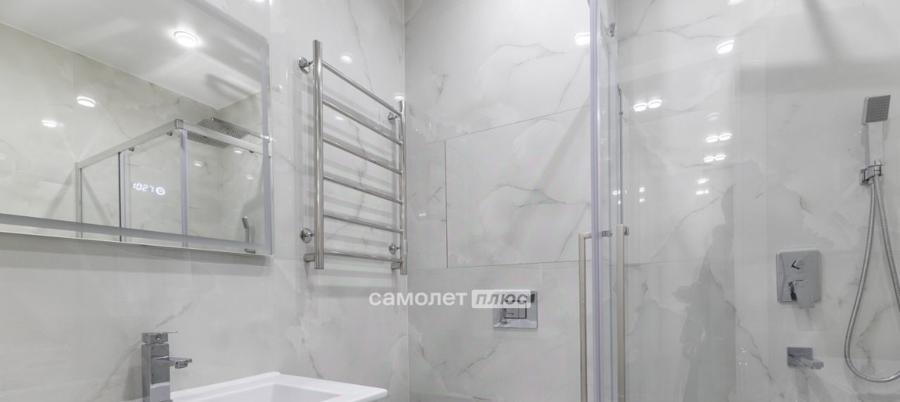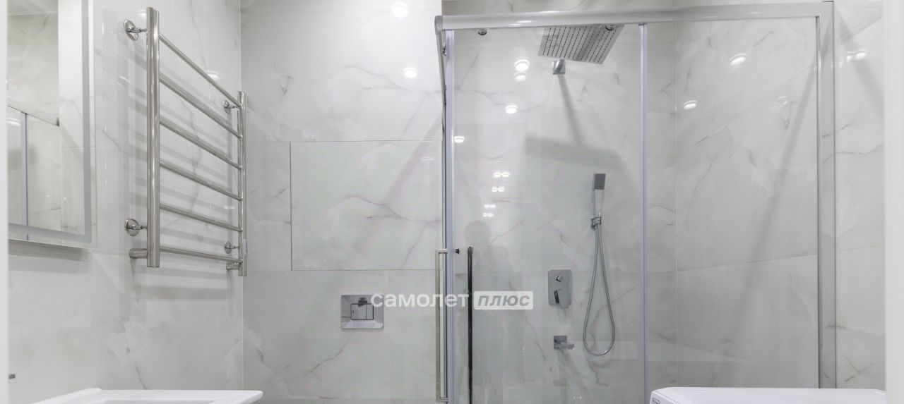 В санузле душевая кабина с системой тропического душа, предусмотрен шкаф для хранения моющих средств, теплый пол, установлена стиральная машина, Сплит система кондиционирования при необходимости позаботиться о вас, поддерживая комфортную температуру.