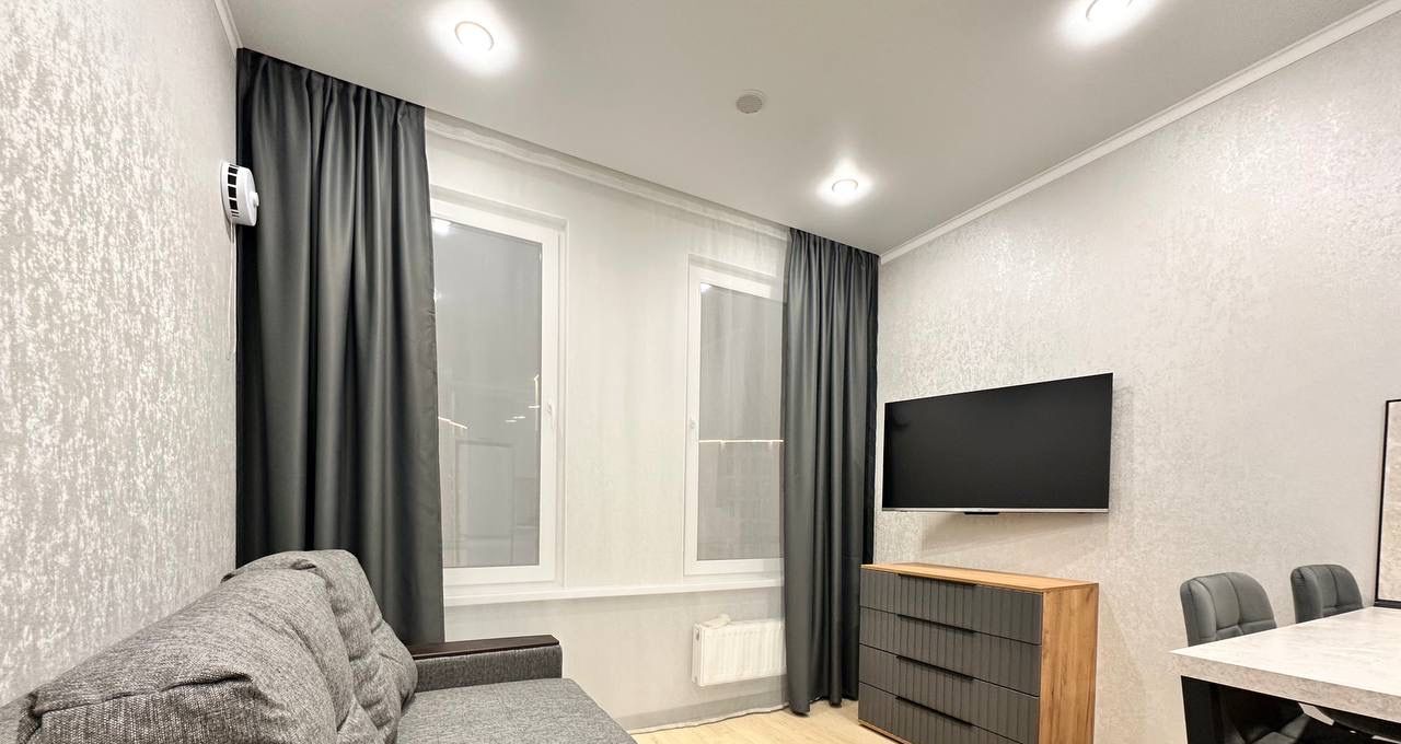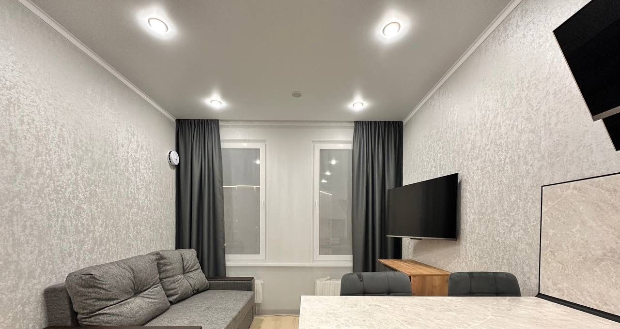 Планировка: Просторная кухня-гостиная, изолированная спальня. Совмещенный санузел с качественной сантехникой. В прихожей — большой шкаф-купе.
