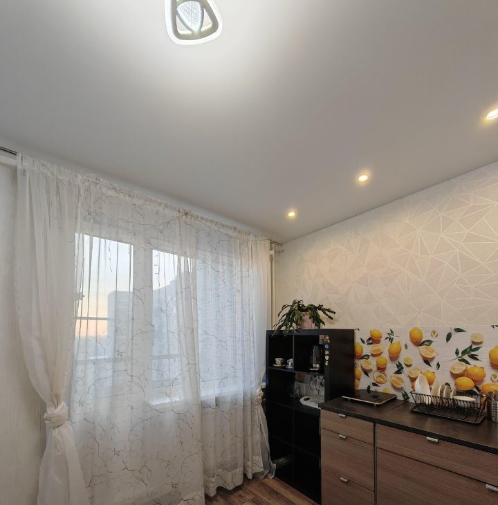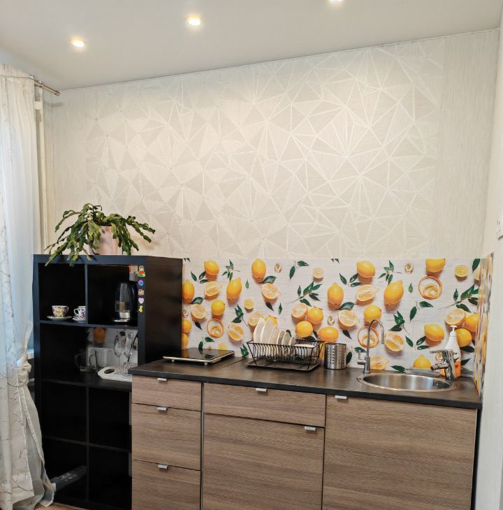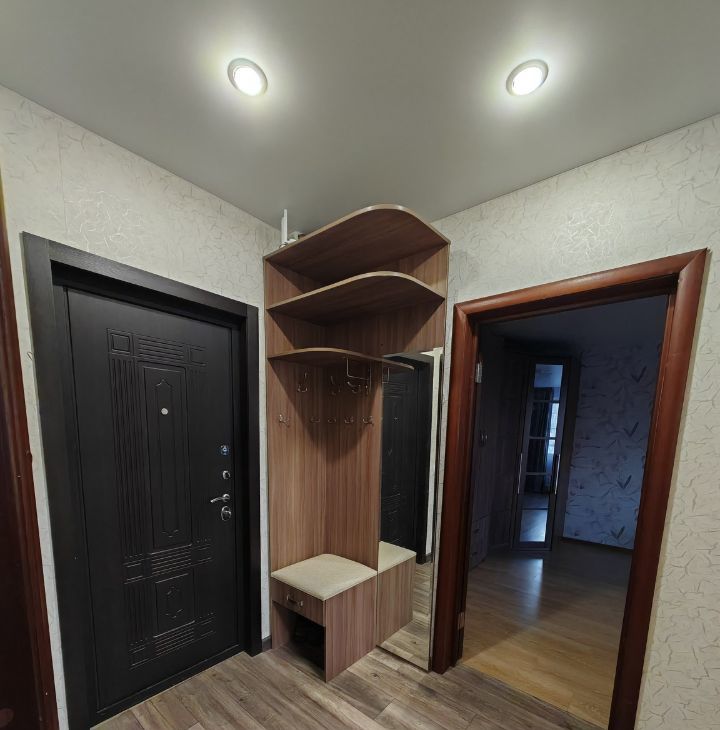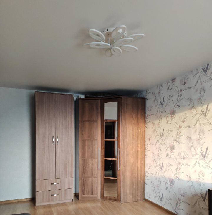 Квартира со свежим ремонтом, полностью мебилирована и готова к проживанию. В жилой комнате установлены два шкафа, компьютерный стол, раздвижной диван. На кухне установлен новый холодильник, кухонный гарнитур с одноконфорочной индукционной плитой и стол. В ванной комнате установлена стиральная машинка, душевая система с тропическим душем.