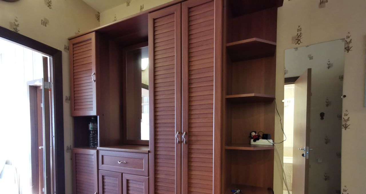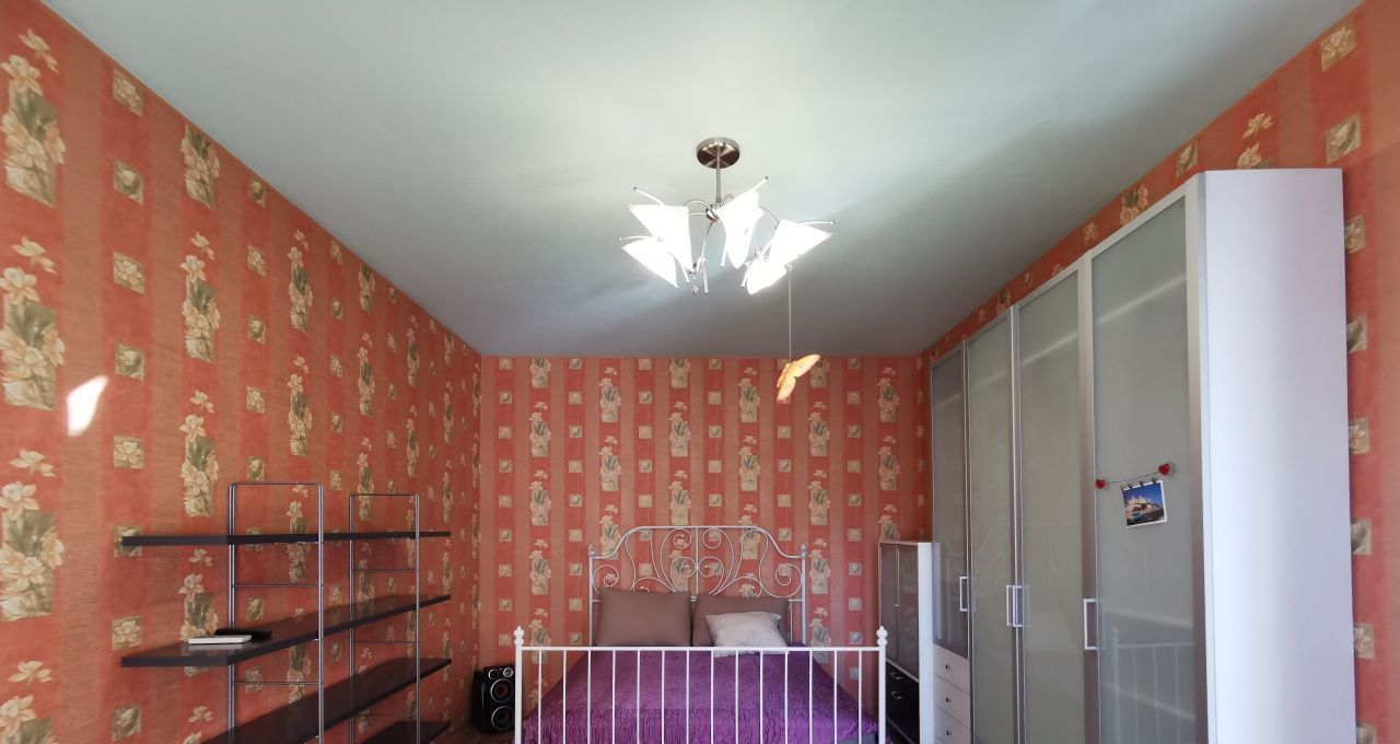 Удобная планировка. Ванная раздельны с туалетом, в прихожей вместительная система хранения, приватная зона спальни отдалена от входа. В спальне большая двухспальная кровать, вместительный шкаф, коммод, стеллаж для книг и декора. Поместится всё. Есть балкон с видом на городской пейзаж.