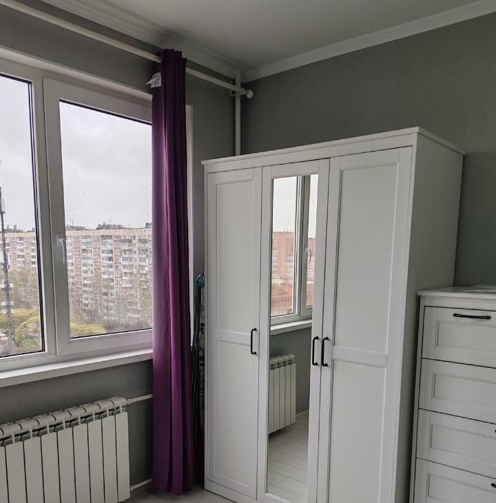 Высокий этаж, мебель Ikea, в квартире есть открытый балкон.