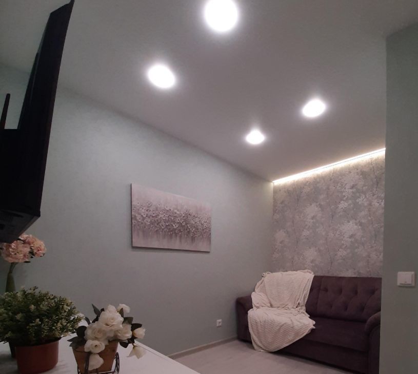 В квартире есть всё необходимое для комфортного проживания, включая скоростной WI-FI интернет. В просторной зонированной комнате, в спальной зоне: имеется двуспальная кровать, две прикроватные тумбочки, шкаф для хранения вещей; в зоне отдыха располагаются раскладной двуспальный диван-кровать, смарт TV 50 дюймов, большая TV тумба. В современной кухне есть: смарт TV 32 дюйма, холодильник, электрический чайник, встроенные - микроволновая печь, варочная панель, духовой шкаф, посудомоечная машина, а также все необходимые кухонные принадлежности, столовые приборы и посуда. Так же на кухне есть диван-кровать. В современном санузле установлена стиральная машина. В квартире есть утюг с раскладной гладильной доской, раскладная сушилка для белья и весь необходимый уборочный инвентарь.