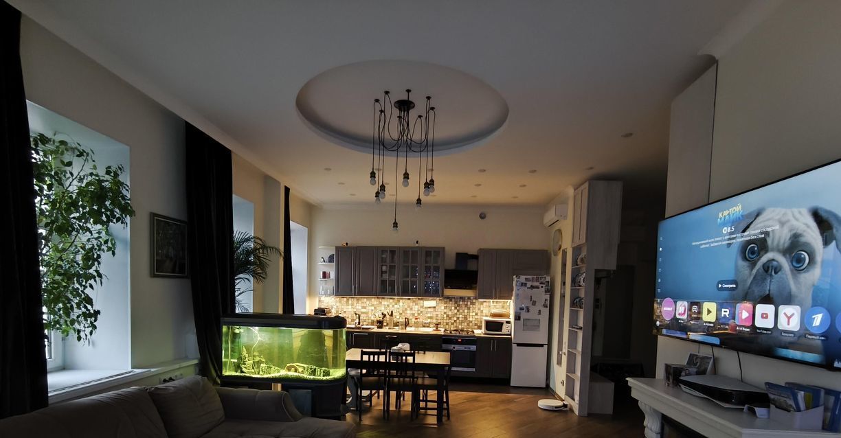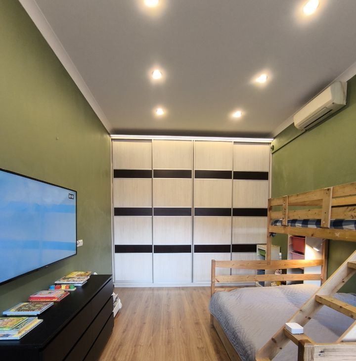 Продается уютная квартира с современным евро-ремонтом. Просторная гостиная с высокими потолками и стильным освещением, оборудована встроенными шкафами и вместительным аквариумом. Кухня совмещена с обеденной зоной, оснащена всей необходимой техникой, включая холодильник и посудомоечную машину.
