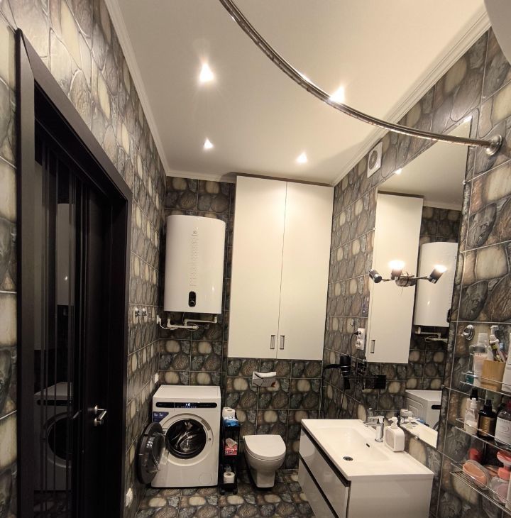 Санузел раздельный, выполнен в современном стиле с качественной отделкой и оснащенностью, включая стиральную машину. В квартире также имеется гардеробная.