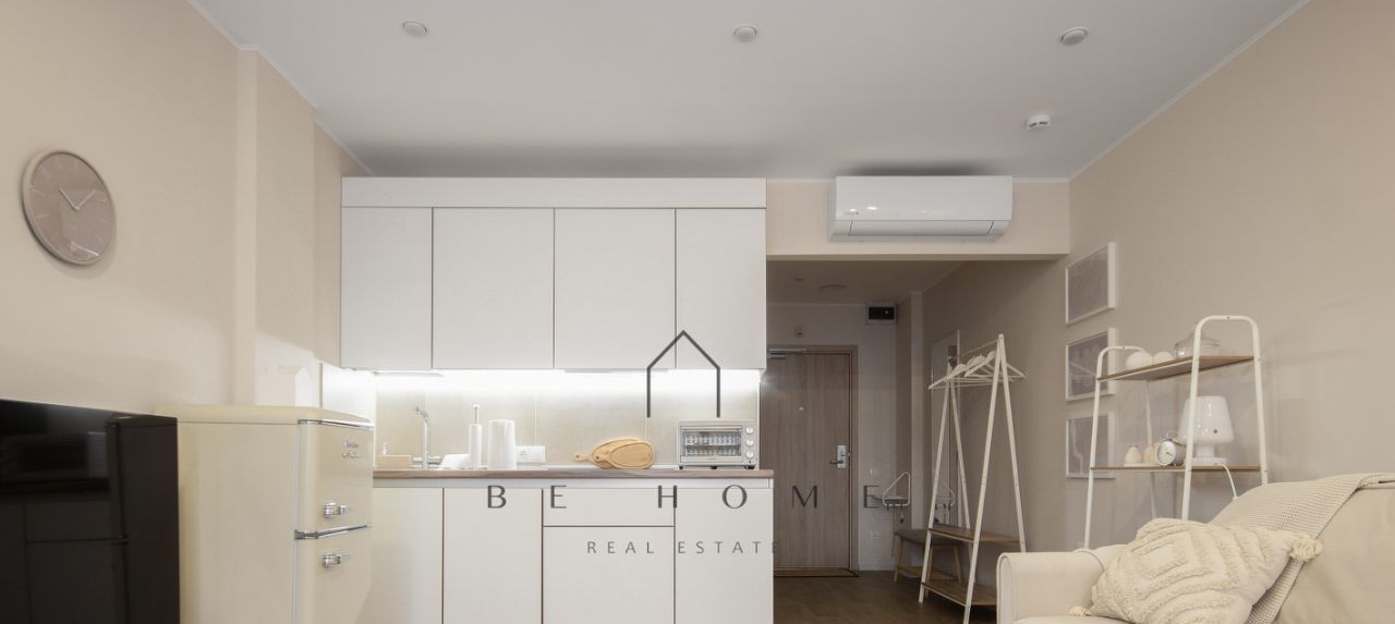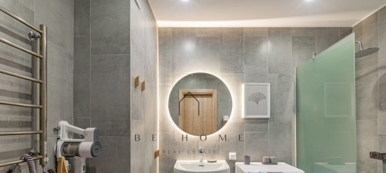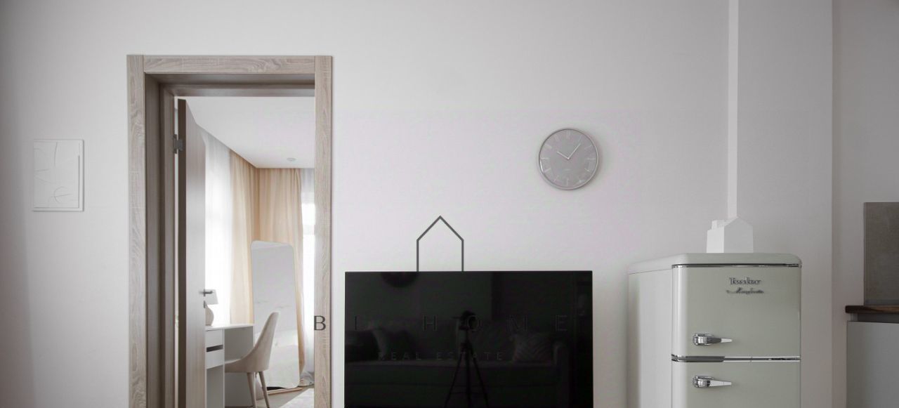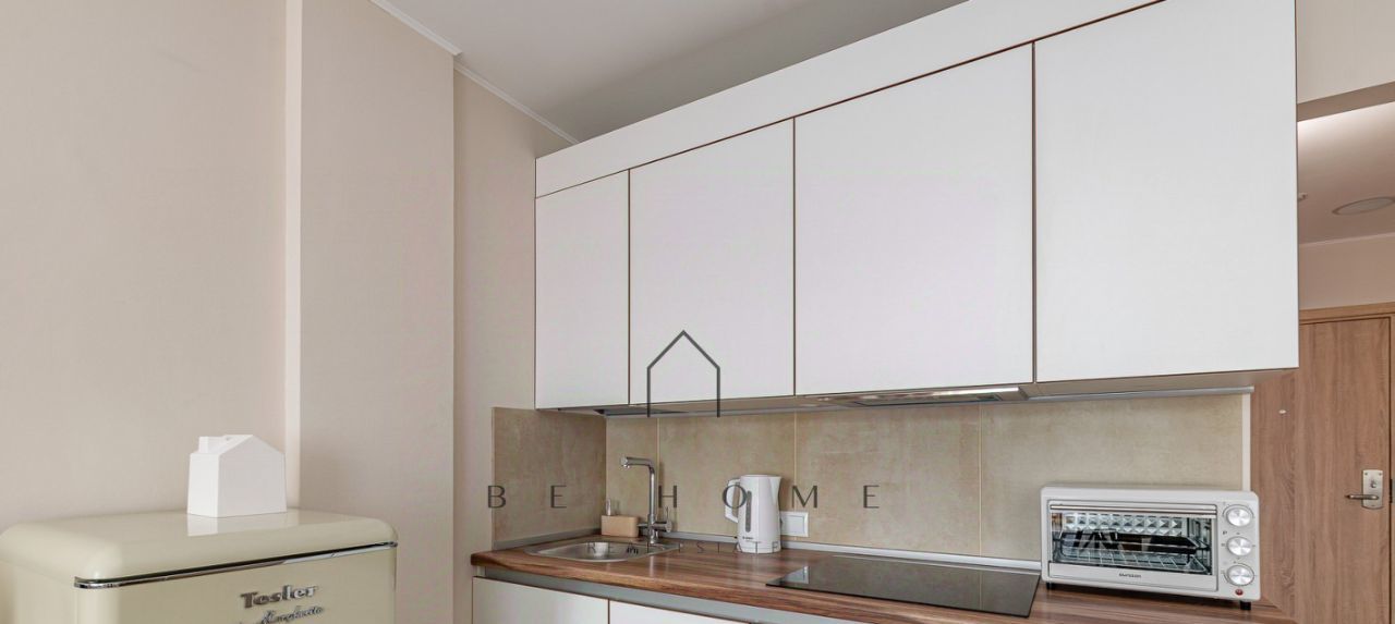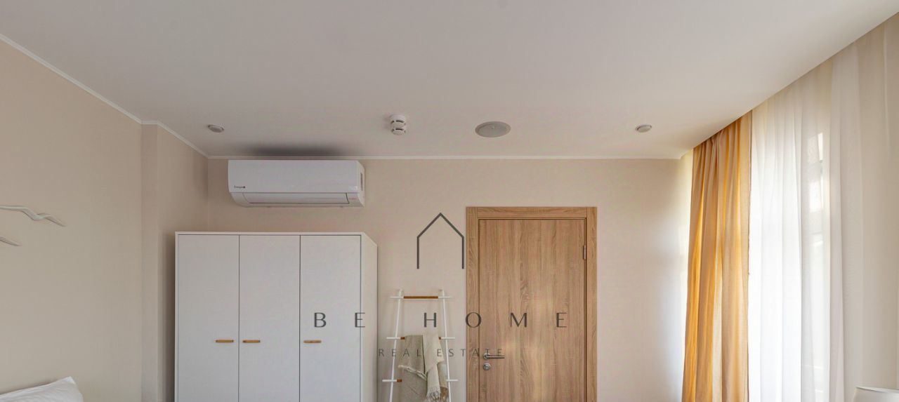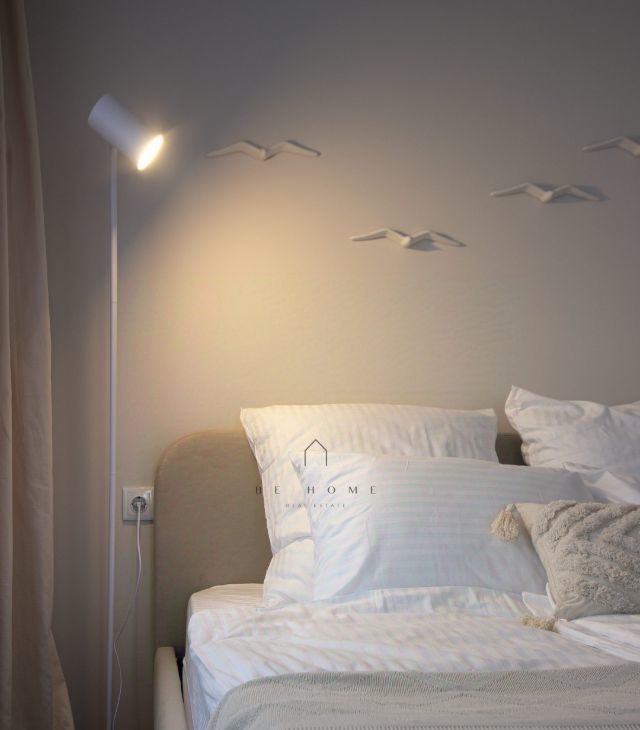 Апартамент полностью оснащен и готов к проживанию. Встроенная кухня с посудомоечной машиной, вытяжка, вся необходимая мелкая бытовая техника.