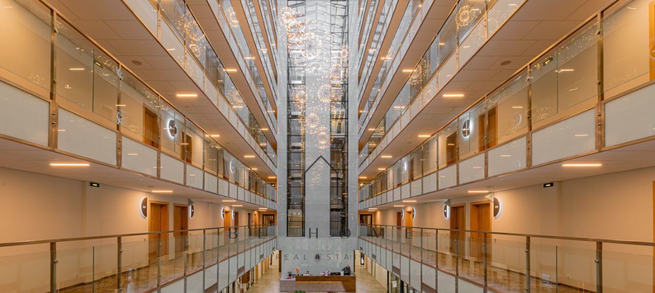 Лобби комплекса поражает масштабом и представляет собой ряд коммерческих помещений (пекарня, кофейня, магазин), а также ресепшен.