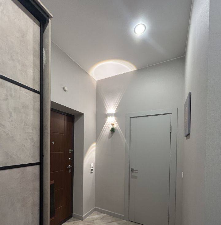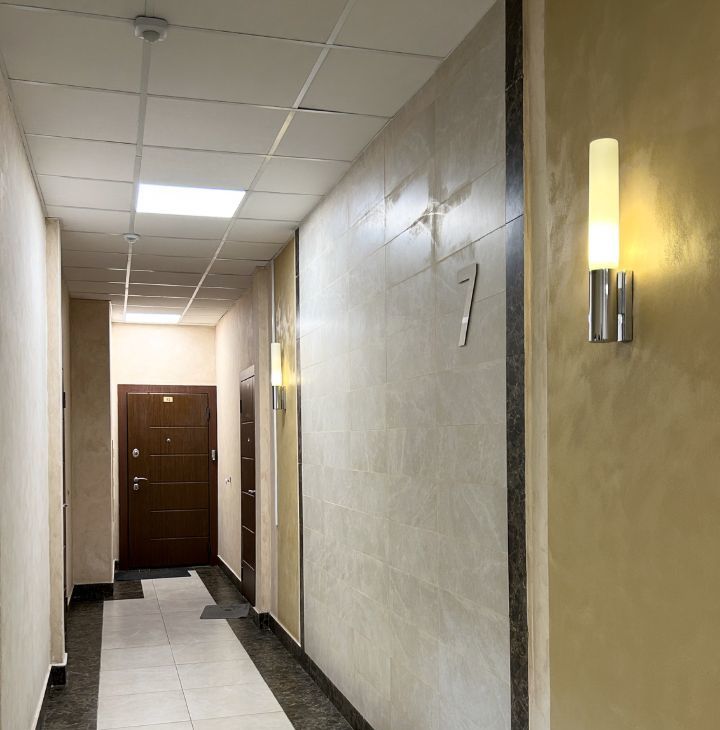 В комнате на полу также паркетная доска, остальные полы - плитка. Подогрев пола в зоне кухонной мебели, в коридоре, санузле. Умные выключатели, можно ставить на таймер.
