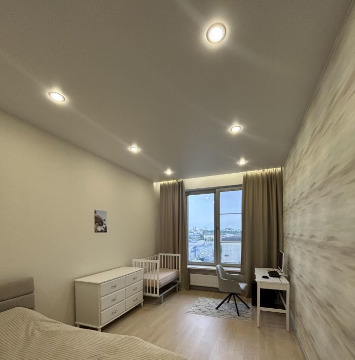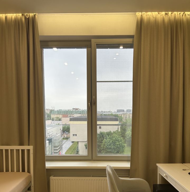 Чистая светлая просторная квартира с прекрасным видом на панораму Васильевского острова. Окна выходят на юго-запад (солнце после обеда, из окон по вечерам летом шикарные закаты).