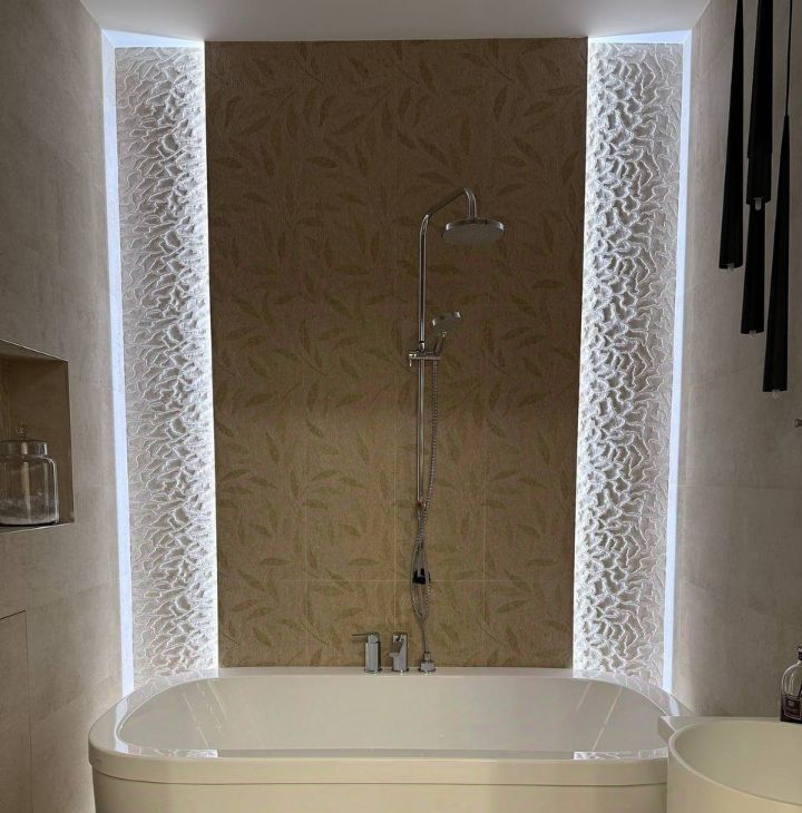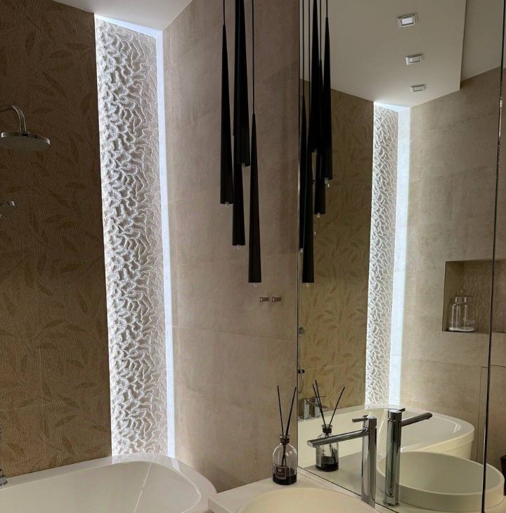 • Стильный санузел с шикарной ванной, камином, дизайнерским ремонтом и дополнительным местом для хранения