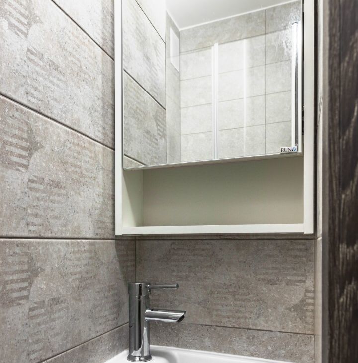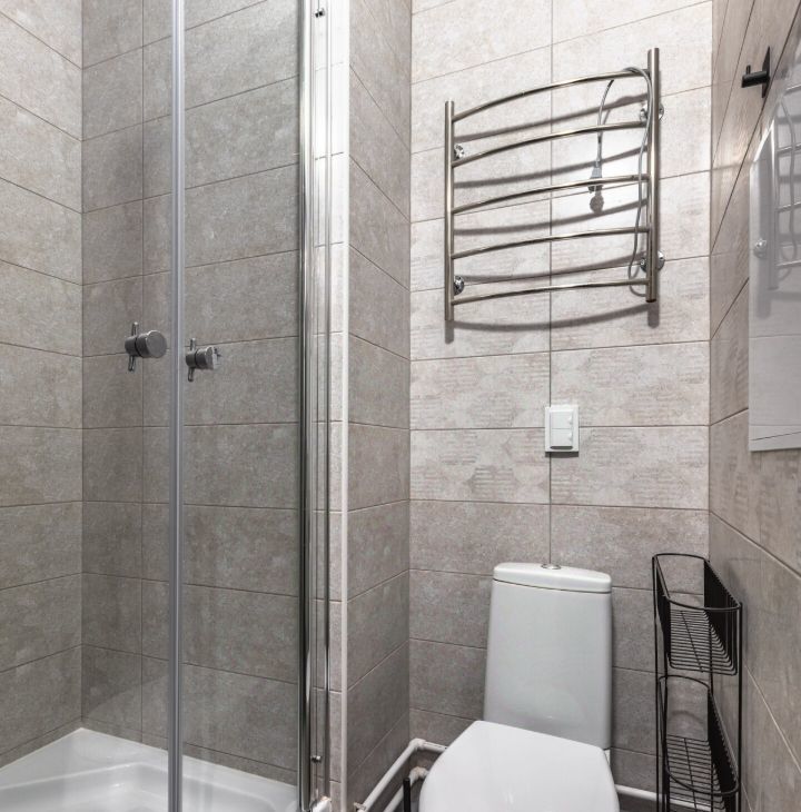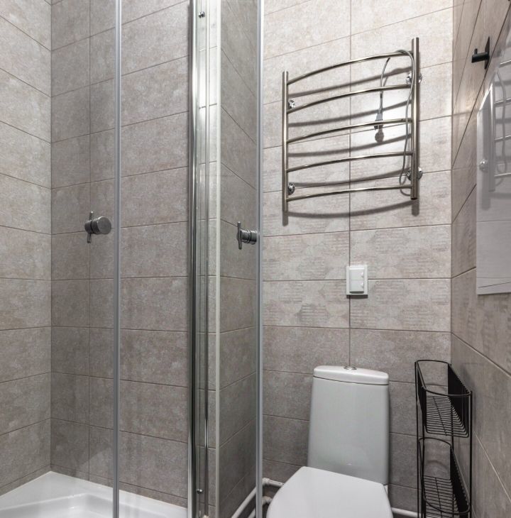 • Стильный санузел с душевой кабиной.