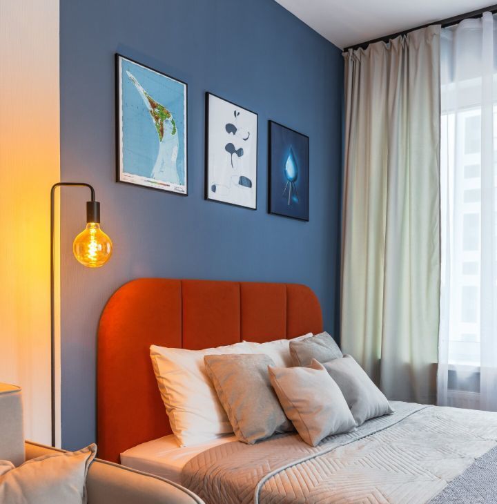 • Уютная спальная зона с кроватью, шкафами и раскладным креслом..