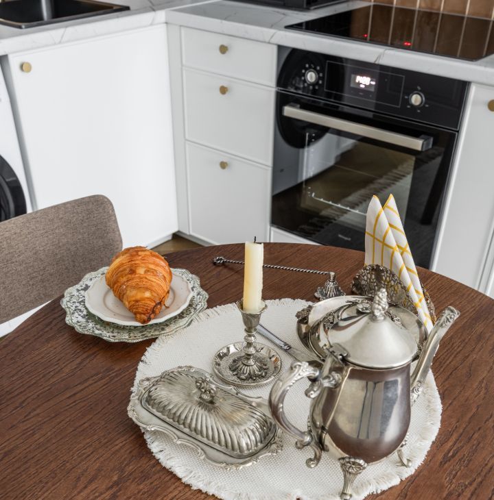 В квартире есть всё необходимое для комфортного проживания. На кухне и в комнате присутствует вся необходимая мебель. Для удобства жильцов в квартире установлены холодильник, индукционная плита, духовой шкаф, микроволновая печь, чайник, телевизор, стиральная машина, посуда для приготовления еды и сервировки стола. Ванная комната оборудована душевой кабиной. Высокоскоростной интернет обеспечит вам доступ к информации и развлечениям в любое время.