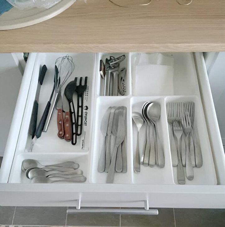 Стиральная машина, холодильник, микроволновка, варочная панель, чайник, посуда, столовые приборы