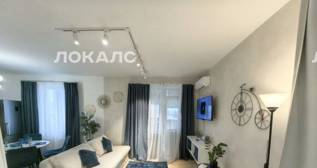 В квартире выполнен дизайнерский ремонт, что делает её не только стильной, но и функциональной. Жилая зона и кухня полностью меблированы, поэтому вам не придётся заботиться о мебели. Из техники есть всё необходимое для комфортного проживания: кондиционер, холодильник, стиральная машина и телевизор Яндекс Алиса. В ванной комнате установлена удобная ванна. Также имеется лоджия ,обустроенная барной стойкой и качелями, где можно приятно провести время.