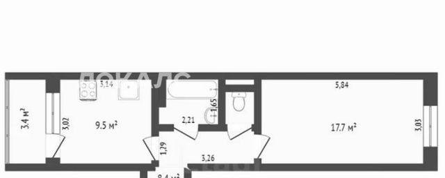 1-к кв. Санкт-Петербург просп. Маршала Блюхера, 9к3 (39.0 м²)