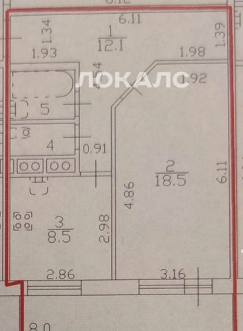 1-комнатная квартира: Санкт-Петербург, площадь Конституции, 1к2 (38 м²)