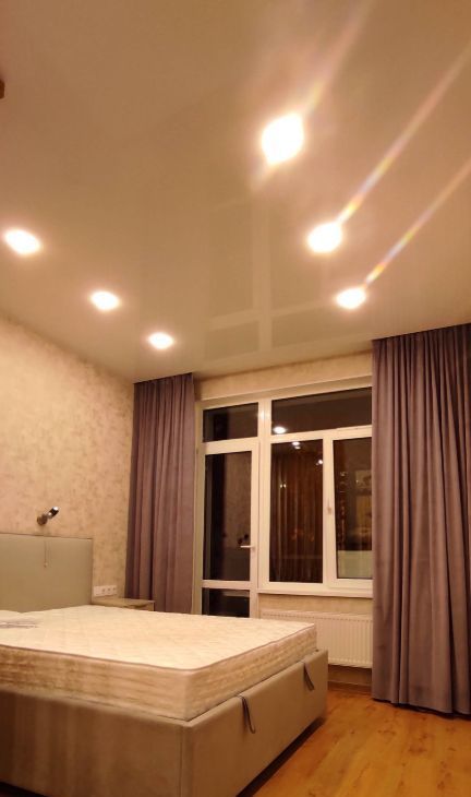 В квартире качественный ремонт, установлена современная техника, в том числе индукционная варочная панель, духовой шкаф, посудомоечная и стиральная машины, кондиционер, кровать queen size с ортопедическим матрасом, гардеробная комната, панорамное остекление с видом до горизонта - на город, Финский залив и Кронштадт с увитой виноградом лоджии.
