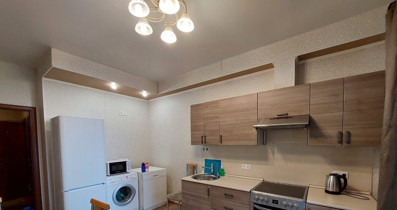 В квартире имеется все необходимое для комфортного проживания - современная новая мебель, встроенная кухня с варочной панелью, стиральная и посудомоечная машины, стеклопакеты, санузел в кафеле, застекленная лоджия.