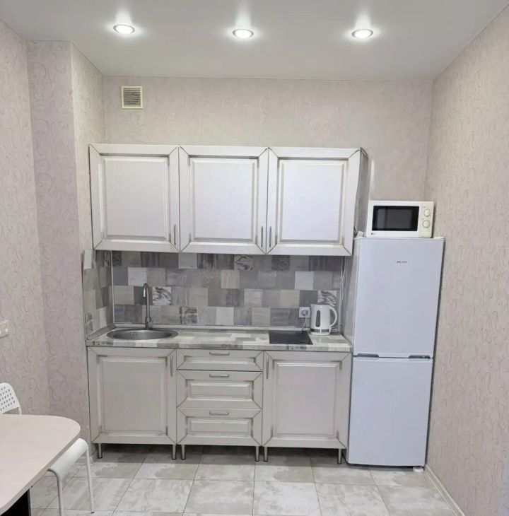 Квартира полностью меблирована: на кухне и в комнате есть всё необходимое для комфортного проживания. Из техники — холодильник, телевизор, стиральная машина, микроволновая печь.Санузел совмещённый, с ванной. Сделан качественный ремонт.