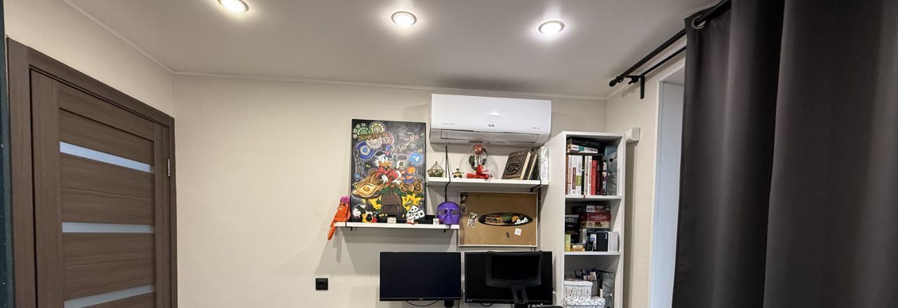 Квартира в хорошем жилом состоянии. Несколько лет назад обновлялся ремонт: установлены стеклопакеты, кондиционер, заменена электрика, установлен магистральный фильтр первичной очистки и фильтр питьевой воды, уложен ламинат в комнате, линолеум в коридоре, установлены натяжные потолки, заменены радиаторы отопления, змеевик в ванной. В квартиру можно заехать и жить сразу, без срочных вложений. мебель остаётся, техника — частично (варочная поверхность, вытяжка, кондиционер)