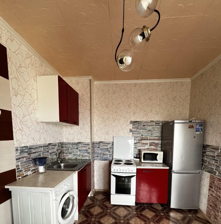 Квартира в хорошем состоянии, чисто и уютно. Есть вся необходимая мебель и техника: холодильник, свч, плита, телевизор и стиральная машина. Ванная комната оборудована полноценной ванной, что оценят любители расслабляющих водных процедур.