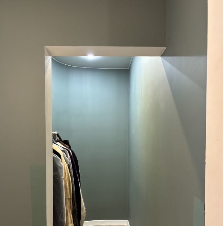 Планировка включает одну комнату(гостиная/кухня), совмещенный санузел, отдельную спальню, гардеробную, много места для хранения вещей. Остается техника (ПММ, духовка, варочная поверхность, микроволновая печь) кроме холодильника и стиральной машины.Вопрос о мебели обсуждается отдельно. Есть возможность перевода в жилой фонд.