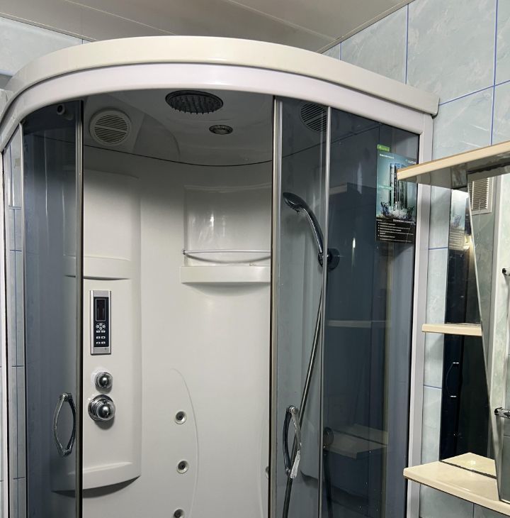 Санузел совмещенный, оборудован душевой кабиной. Окна выходят на улицу.