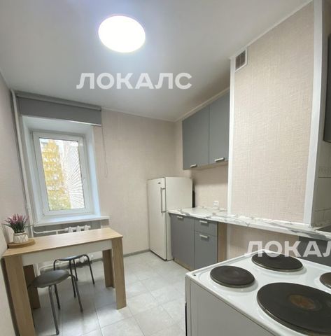 Сдается уютная однокомнатная квартира с евроремонтом в 12-этажном доме. Общая площадь квартиры — 34 кв. м, из которых 18 кв. м занимает жилая зона и 8 кв. м отведено под кухню. Квартира находится на 3-м этаже, окна выходят во двор, что обеспечивает тишину и спокойствие. В доме есть пассажирский и грузовой лифты, а также наземная парковка.