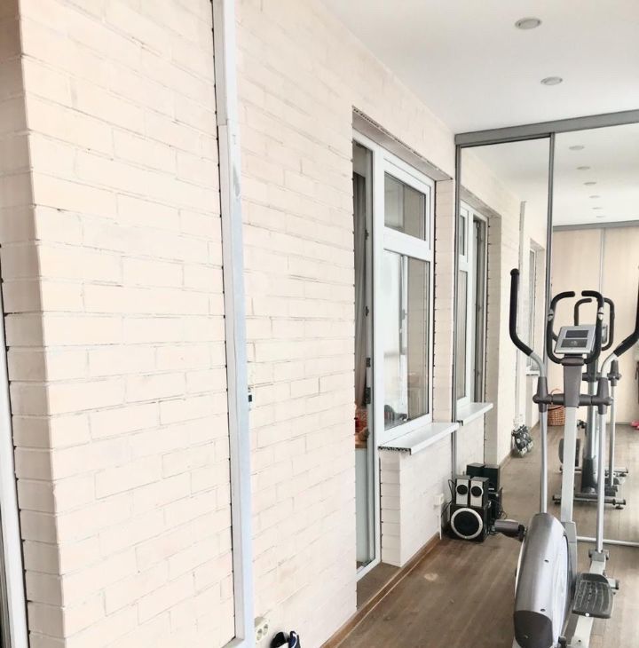 В квартире просторная лоджия с панорамным остеклением, теплым полом из паркетной доски.