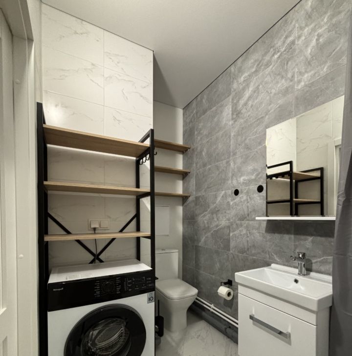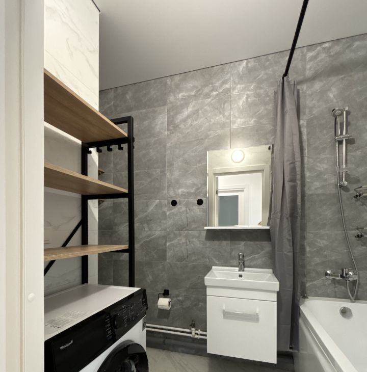 Квартира полностью меблирована и оборудована техникой (холодильник, вар панель, дух шкаф, вытяжка, чайник, стиральная машина). Все новое. На кровати качественный ортопедический матрас. В кухне-гостиной диван - кровать.
