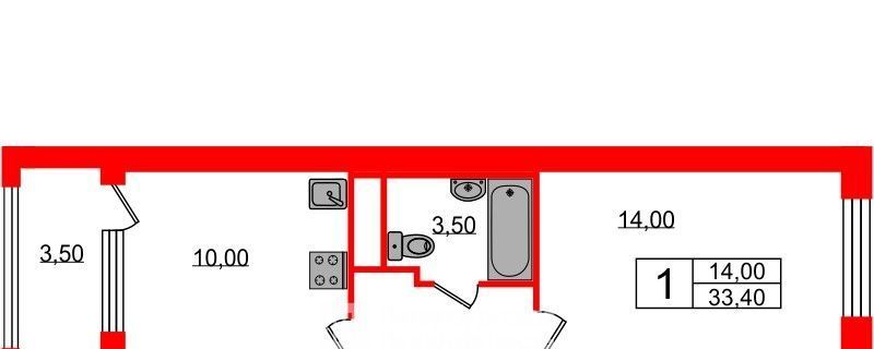 1-к кв. Санкт-Петербург просп. Обуховской обороны, 36 (33.4 м²)