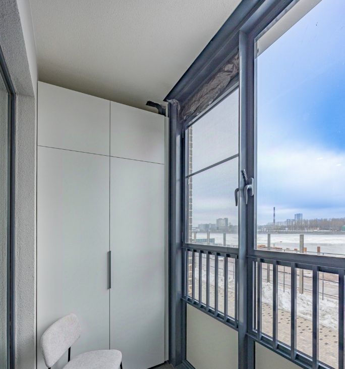 Изолированная комната и светлая кухня с выходом на лоджию и видом на Неву. Новая техника и мебель, есть посудомоечная машина. Качественные бренды "Gorenje", "Hisens", кровать и матрас от Аскона, домофон с хабом zeegbe, интернет Ростелеком.