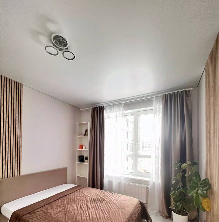 Спальня: кровать с ортопедическим матросом 140 см, вместительный 3х дверных шкаф, шторы блэкаут , книжная полка.