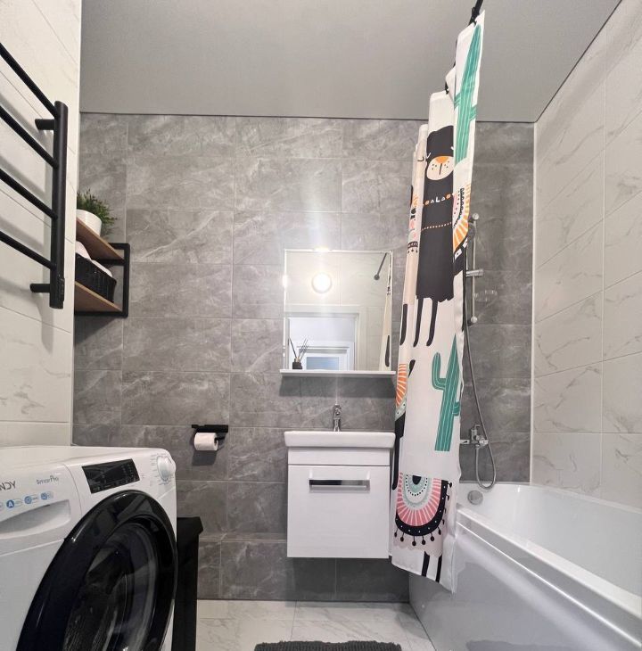 Санузел: ванная с необходимой мебелью, стиральной машиной и теплым полом, утюг, беспроводной пылесос..