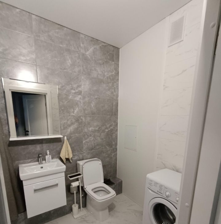 В квартире есть всё необходимое для комфортного проживания: современная мебель на кухне и в комнате, а также полный комплект техники — холодильник, посудомоечная машина, микроволновка, телевизор и стиральная машина. Ванная комната оборудована ванной. Просторная лоджия станет отличным местом для отдыха. Интернет уже подключен, поэтому можно сразу заняться своими делами или организовать удаленную работу.
