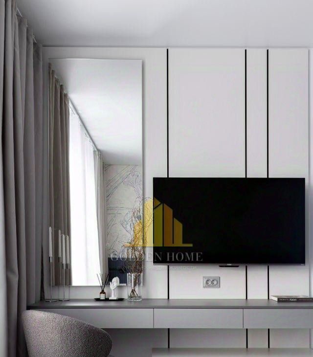 В комнате: двуспальная кровать 160200, большой шкаф, ТВ зона, система хранения, рабочий столик.