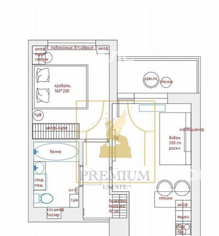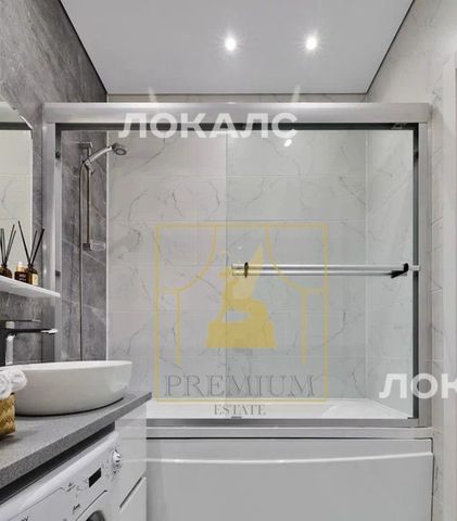 - В санузле : ванна со стеклянным ограждением , раковина, стиральная машина, встроенный шкаф для хоз нужд с гладильной доской , сушилкой и утюгом. Имеются дополнительные розетки в зоне раковины для электроприборов. Также установлен проточный водонагреватель 8 Вт.