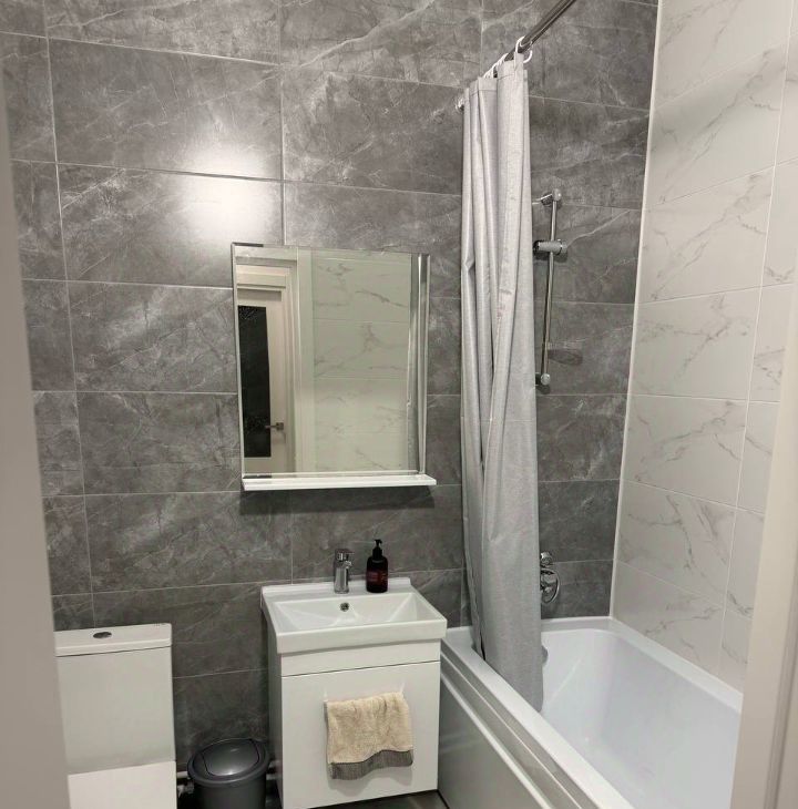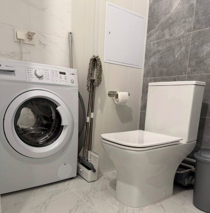 Совмещённый санузел с "теплым полом" и ванной.