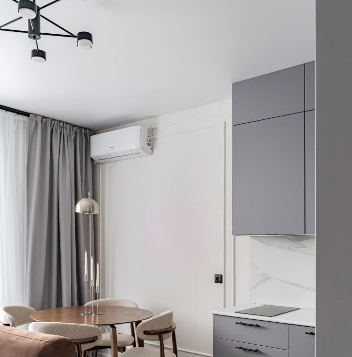 Дизайнерский ремонт в спокойных, серых тонах, балкон. Есть все необходимое оборудование и мебель.