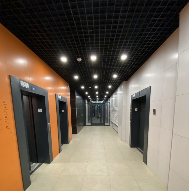 Современный жилой комплекс с чистыми парадными и лифтами. Ухоженные места общего пользования, аккуратная придомовая территория. Формат дома комфортный для спокойного проживания.