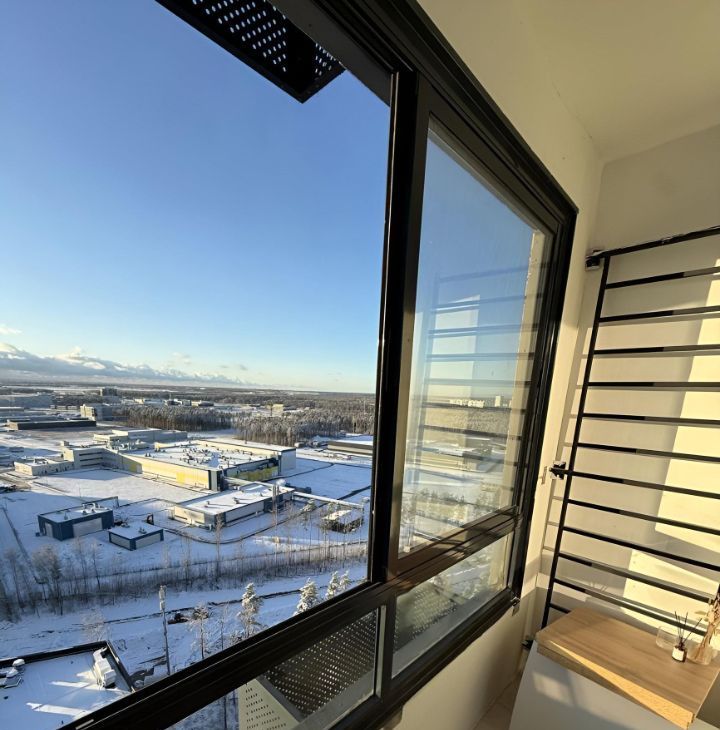 Расположена квартира на 24-м этаже 25-ти этажного дома с прекрасными видами на лес и низко этажные дома, что не мешает любоваться закатами