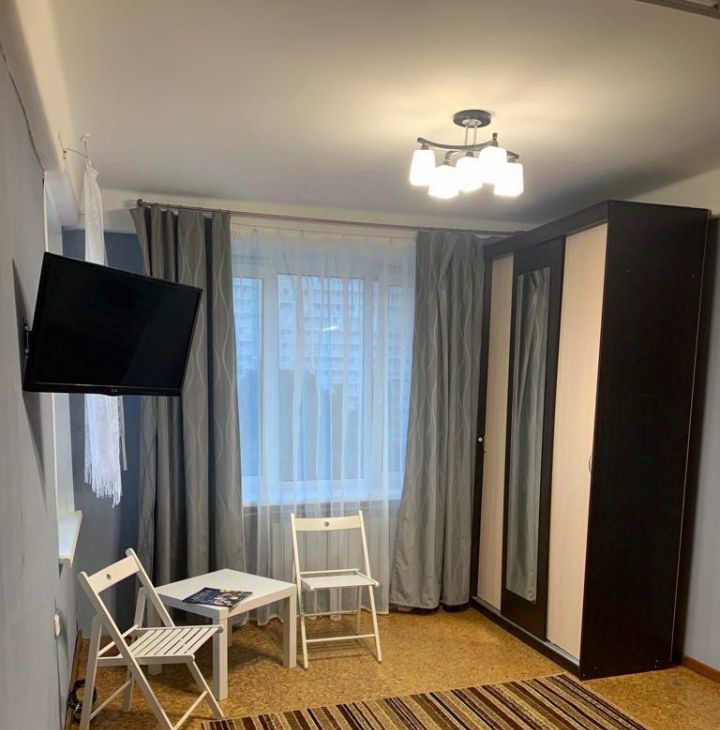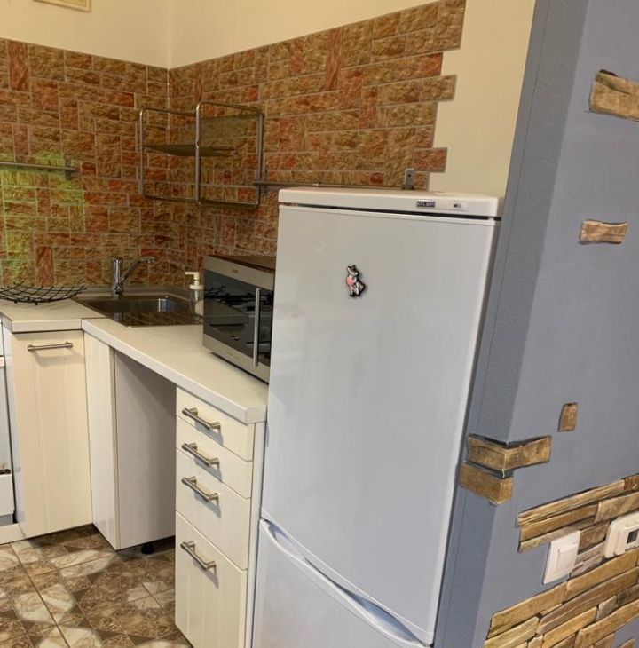 Квартира полностью укомплектована всем необходимым: холодильник, стиральная машинка, микроволновая печь, кухонная мебель, диван, шкаф, телевизор. Светлая, с двумя окнами в тихий зеленый двор. Во дворе детская площадка.